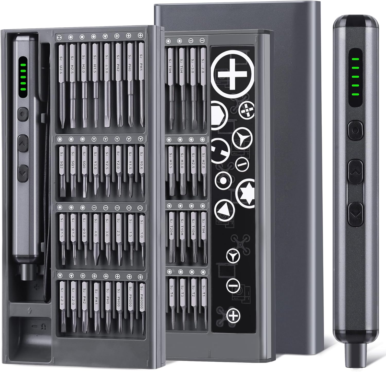 This all-in-one set includes 64 precision S2 steel bits that cover a wide variety of screw types—Phillips, Torx, Flat Head, Triwing, Hex, Pentalobe, Triangle, and more. Whether you're working on your computer, game console, or camera, this set has the bit you need. The kit also comes with essential accessories like a magnetic pad, pry tools, and tweezers to help handle intricate components. All items are housed in a compact magnetic storage case for organized, easy access.